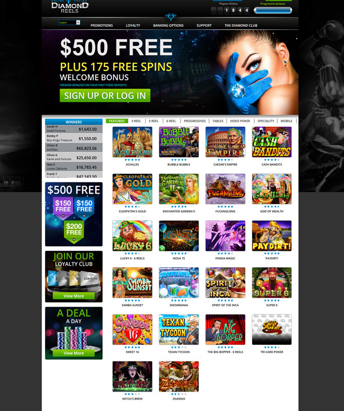 Diamond Reels Online Casino came online in 2015, are owned by Two Web Entertainment and managed by Rodex RR Ltd. BVI who have over 10 year experience in the industry. They are licensed by the government of Curacao and have become one of the hottest online casinos on the net. Players can enjoy some of the best, and most well known casino games from provider Real Time Gaming (RTG).